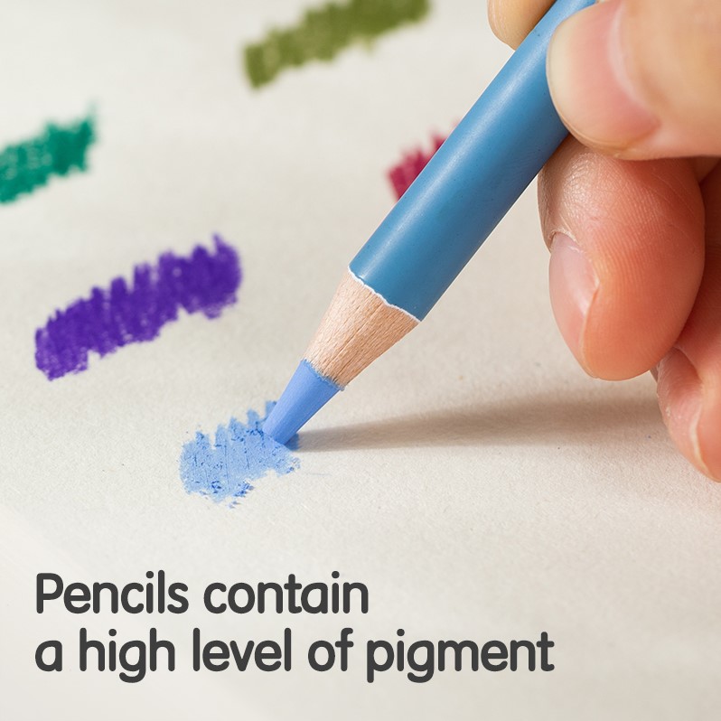Dmast pastelpotloden – 24 kleuren combineren de precisie van een potlood met de zachte, intense kleur van pastel, ideaal voor detailwerk en vloeiende kleurovergangen. Dankzij de hoge pigmentatie werk je eenvoudig met rijke kleuren en subtiele nuances.
