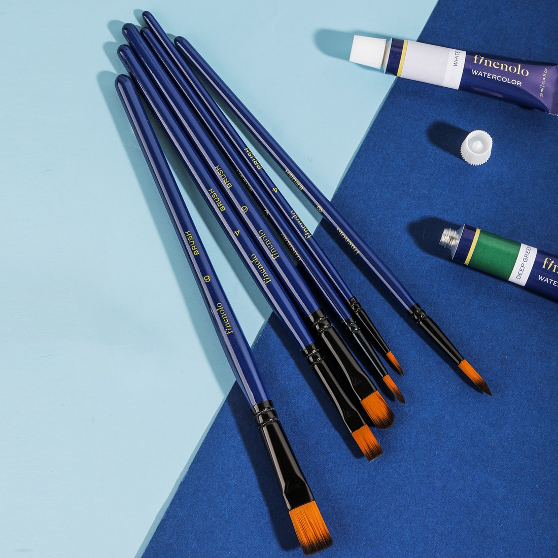 FINENOLO aquarelpenselen set – 6 stuks biedt alles wat je nodig hebt voor nauwkeurig schilderwerk en vloeiende kleurtoepassingen. Dankzij de combinatie van verschillende vormen en maten werk je eenvoudig van fijne details naar grotere vlakken.