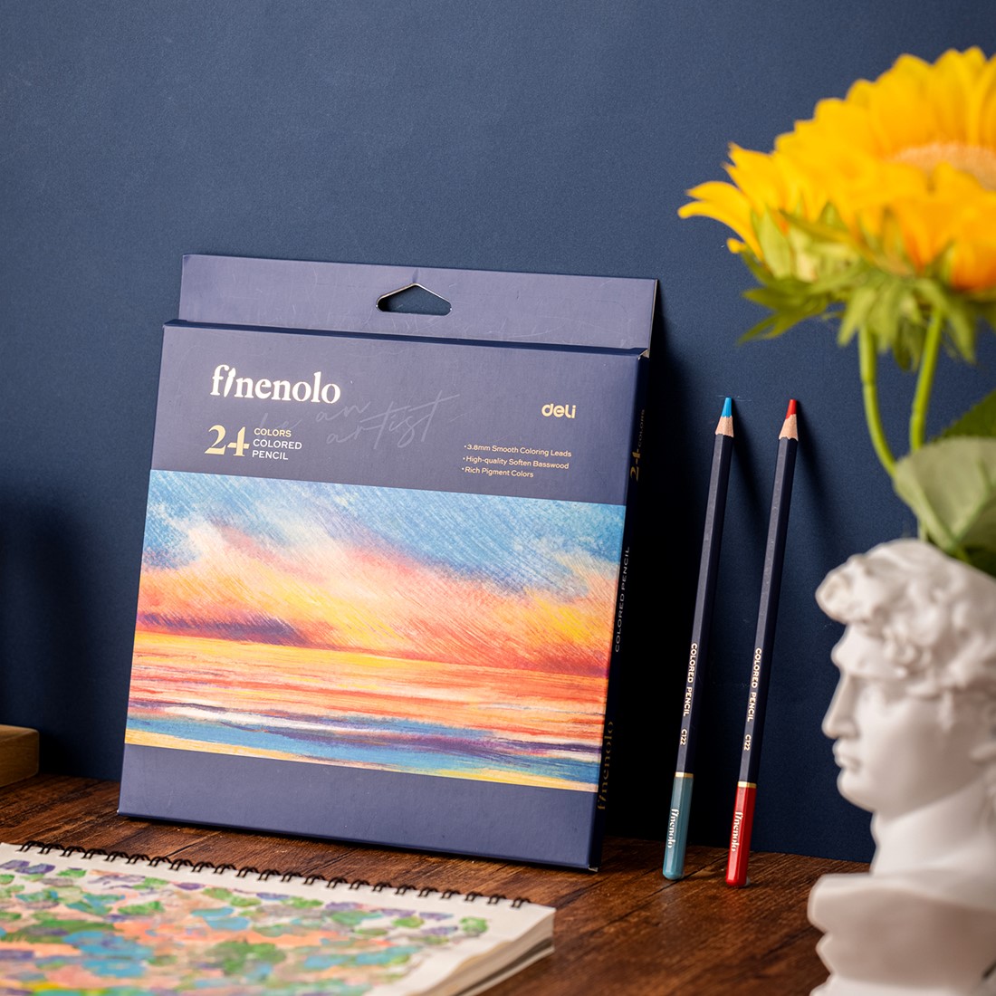 FINENOLO kleurpotloden – 24 kleuren bieden een krachtige kleurafgifte en comfortabele grip, ideaal voor tekenen, kleuren en creatief werk. Dankzij de stevige kern en soepele toepassing werk je eenvoudig aan zowel lichte accenten als volle kleurvlakken.