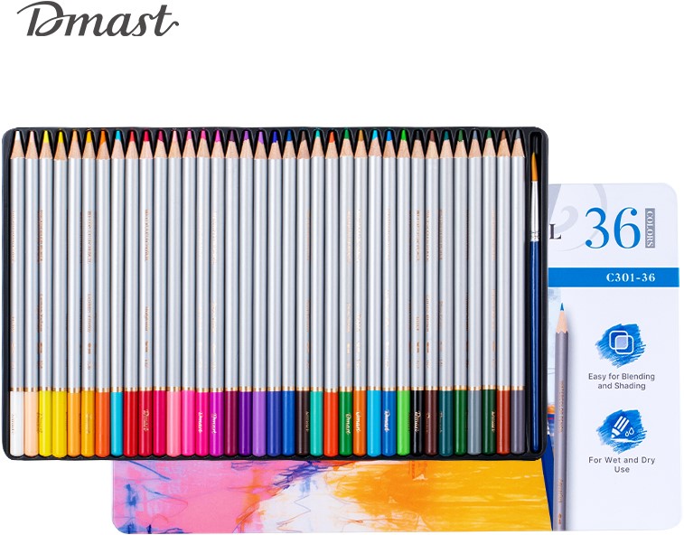 Dmast aquarelpotloden – 36 kleuren combineren de precisie van een potlood met het vloeiende effect van aquarelverf. Ideaal voor zowel droog tekenen als nat schilderen, met veel mogelijkheden voor kleurovergangen en details.