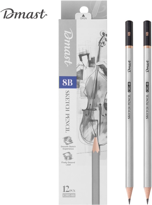 Dmast schetspotlood – 8B biedt een zachte, soepele lijn en is ideaal voor schetsen, tekenen en schaduwtechnieken. Perfect voor werk waarbij meer diepte en contrast gewenst is.