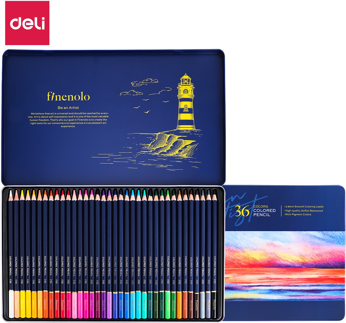 FINENOLO kleurpotloden – 36 kleuren bieden heldere kleuren en comfortabel gebruik voor tekenen en creatieve toepassingen. Ideaal voor dagelijks kleurwerk met een soepele en gelijkmatige kleurafgifte.