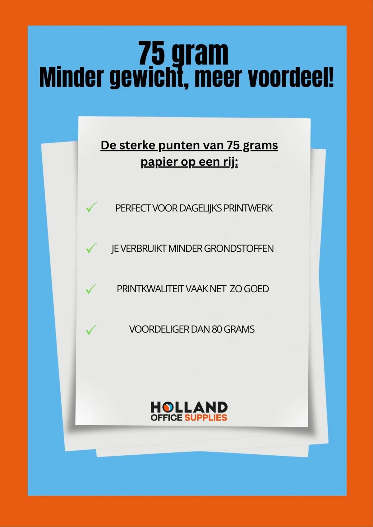 Voor dagelijks printwerk – denk aan notulen, interne memo’s of e-mails – is 75 grams papier dus een slimme én verantwoorde keuze. Minder gewicht betekent ook lagere transportkosten en een kleinere ecologische voetafdruk. Toch weten veel eindgebruikers dit nog niet.